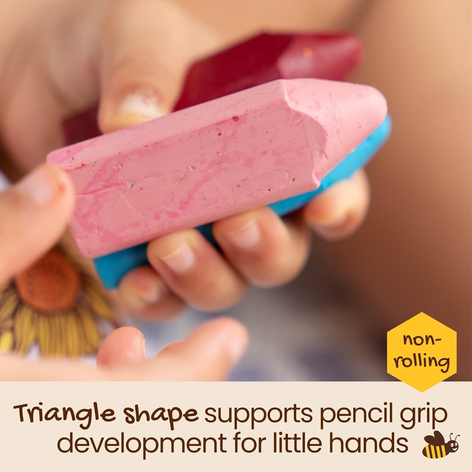 • EASY TO HOLD, HARDER TO BREAK: Honeysticks durable Triangle Crayons are easy for small hands to grasp, but hard for small hands to break! And the triangular shape stops them rolling away!
